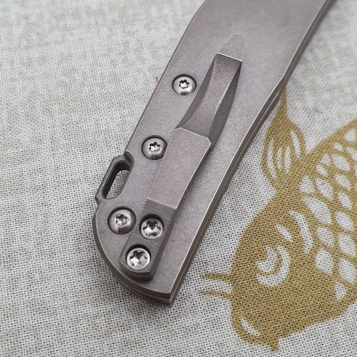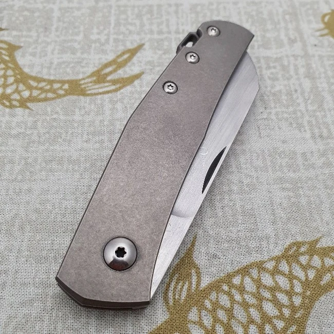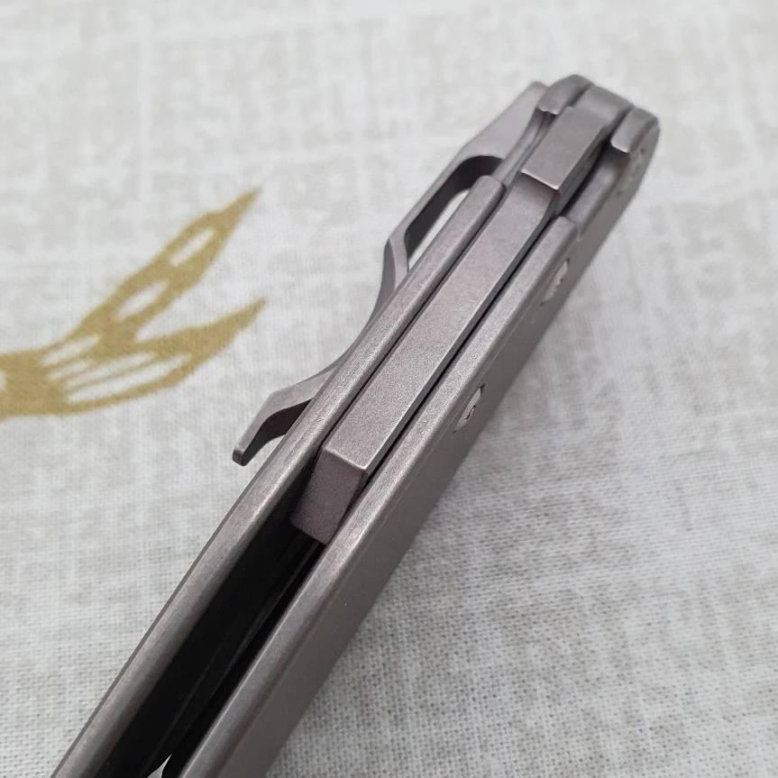 The incredibly clear line and the choice of materials that go hand in hand with it, make the Monte Carlo appear both discreet and noble and sporty and relaxed. The handle is an open titanium construction, which is connected on the back by a colored anodized titanium backspacer (gray in gray on this version). The open construction allows you to clean the knife very easily after use if, for example, dirt sits on the inside.