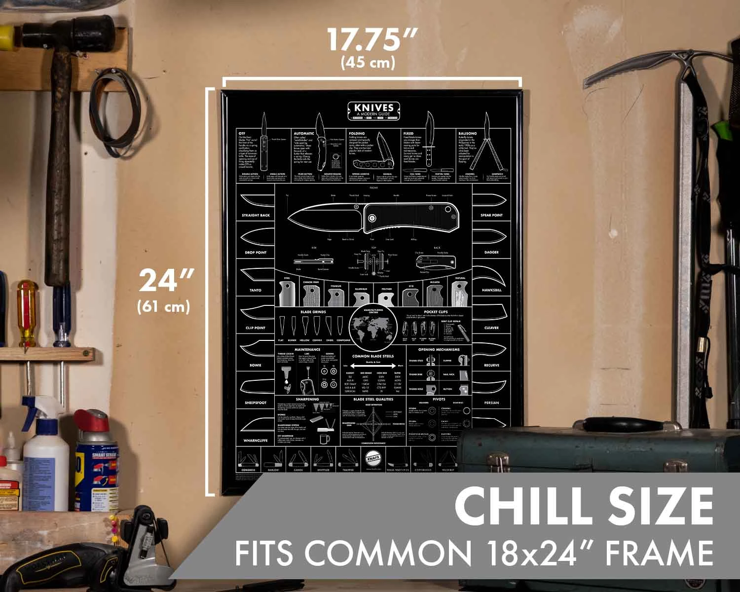 Ben Peterson knows a thing or two about knives. In fact, he knows quite a bit about pocket knives. After all, Ben has not only had a stellar YouTube career at Blade HQ, but was also previously employed at CRKT. So over the years, he’s been able to amass an impressive wealth of knowledge. So what could be more obvious than to compress everything you know about such a topic onto a single poster. This is probably the idea behind the Knives, a modern guide poster.