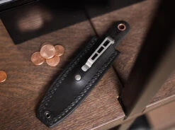 - with leather sheath with integrated clips