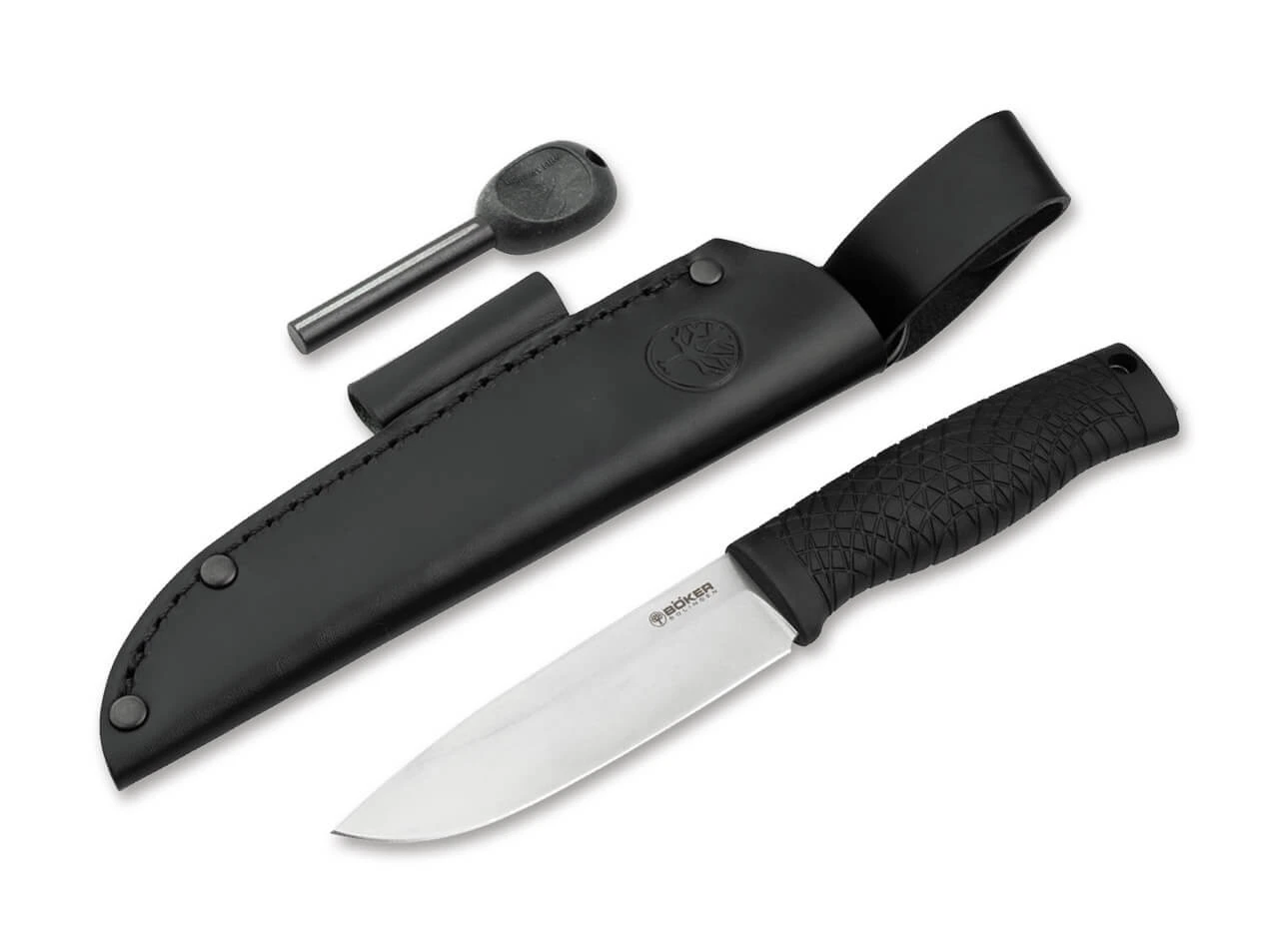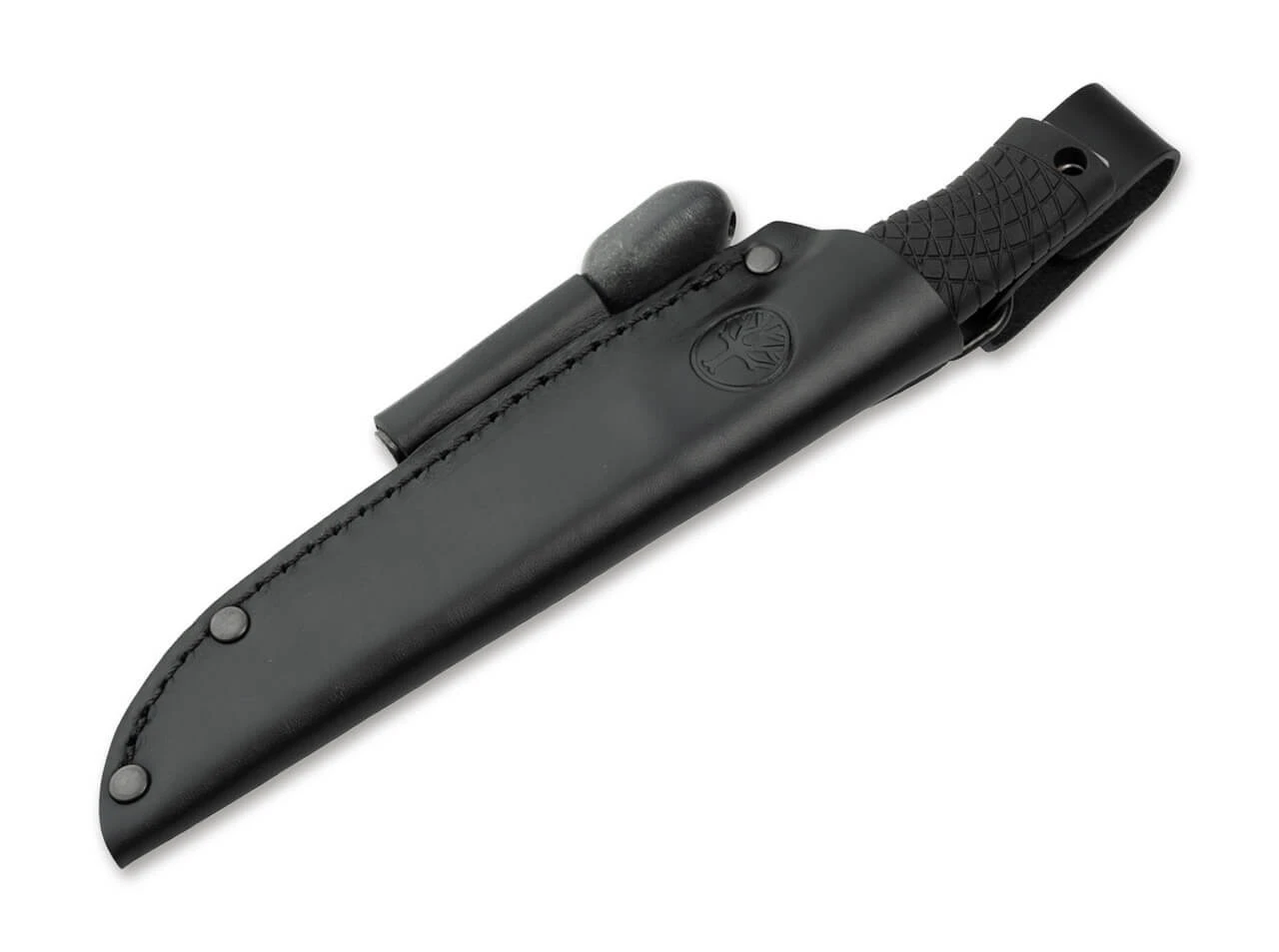 Included is a leather sheath, including a dengler. The knife is of course manufactured entirely in Böker’s factory in Solingen.