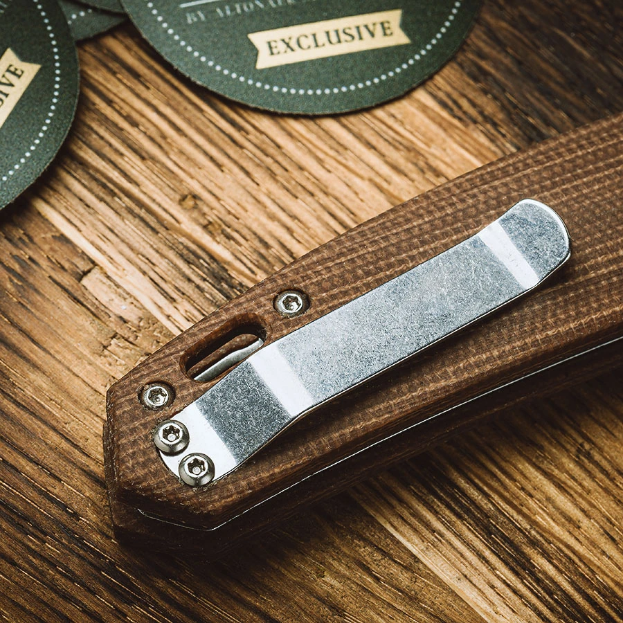 The handle, like the blade, bears the typical signature of Jens Ansø. Unlike its predecessor, the Haddock Pro now features a liner lock. For our KnifeLounge Exclusive version, we have chosen Micarta as the handle material. It was important to us to be able to offer our customers two color variations. So we have the knife once with brown Micarta and – matching our beloved Chesterfield armchair in our Knife Lounge – in a rich dark green.