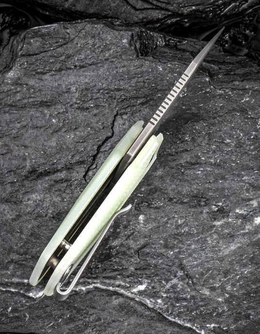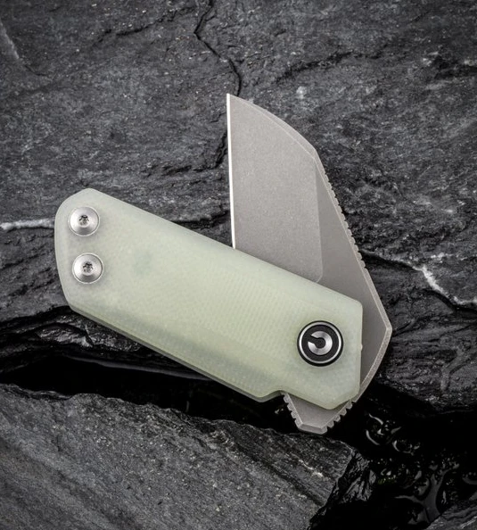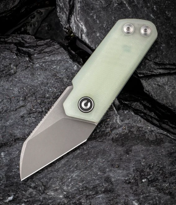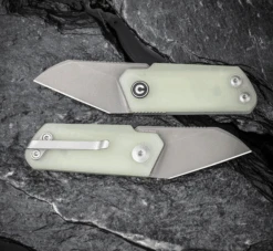 Here you get an EDC pocket knife that is truly a mini EDC. The Ki-V is Ostap Hel’s first collaboration with Civivi and is intended as a small office pocket knife for the lightest everyday cutting tasks. The lack of a lock also makes it portable almost anywhere, so you should basically never have a problem with this little pocket knife. The design of the knife is based on the classic Kiridashi knives of Japan and features a highly modern look despite the historical background. To prevent the blade from simply falling back when open, a liner with your detent ball presses down on the blade root, creating a sort of flip-joint mechanism. The front flipper and ball bearings make for a lot of fun in the office and annoyed colleagues. For the blade steel, Civivi relies on the proven 9CR18MOV, which can be easily resharpened and is extremely rust-resistant. The handle is made out of natural g10.