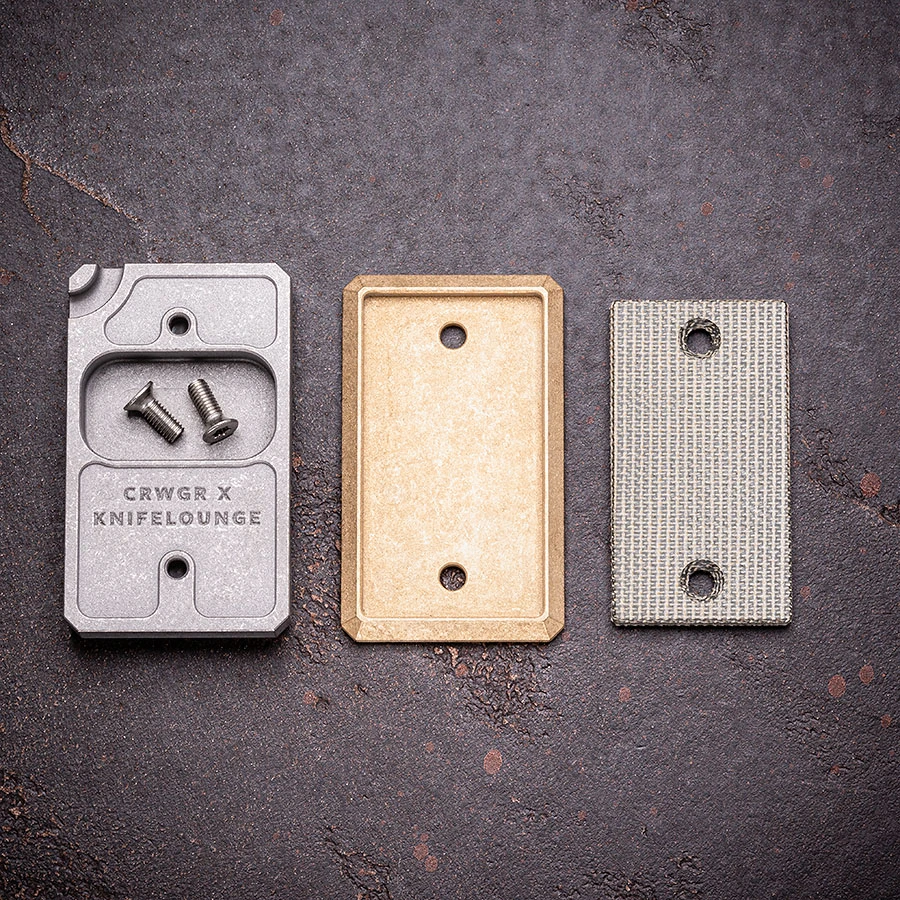 “I’ve always been very impressed with all the great makers in the EDC scene who build cool stuff that people carry and use every day. I’ve always thought Worry Stones were nifty,but I’m also a sucker for things with added value. In and of themselves, these are just blocks that are only good as fidget toys or trouser weights. That’s why I had the spontaneous idea to integrate a bottle opener. That it should be modular was my concept from the beginning, so that everyone can assemble it to fit his EDC. Of course, it’s made of my favorite materials: titanium, micarta and brass.”