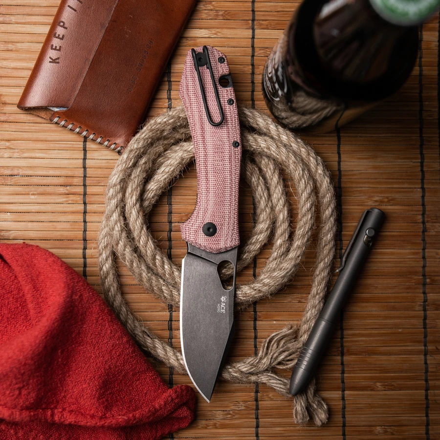 The red Micarta version also got a steel upgrade. The M390 steel is currently a very popular steel and with the black stonewashed finish it makes a great contrast to the red micarta.