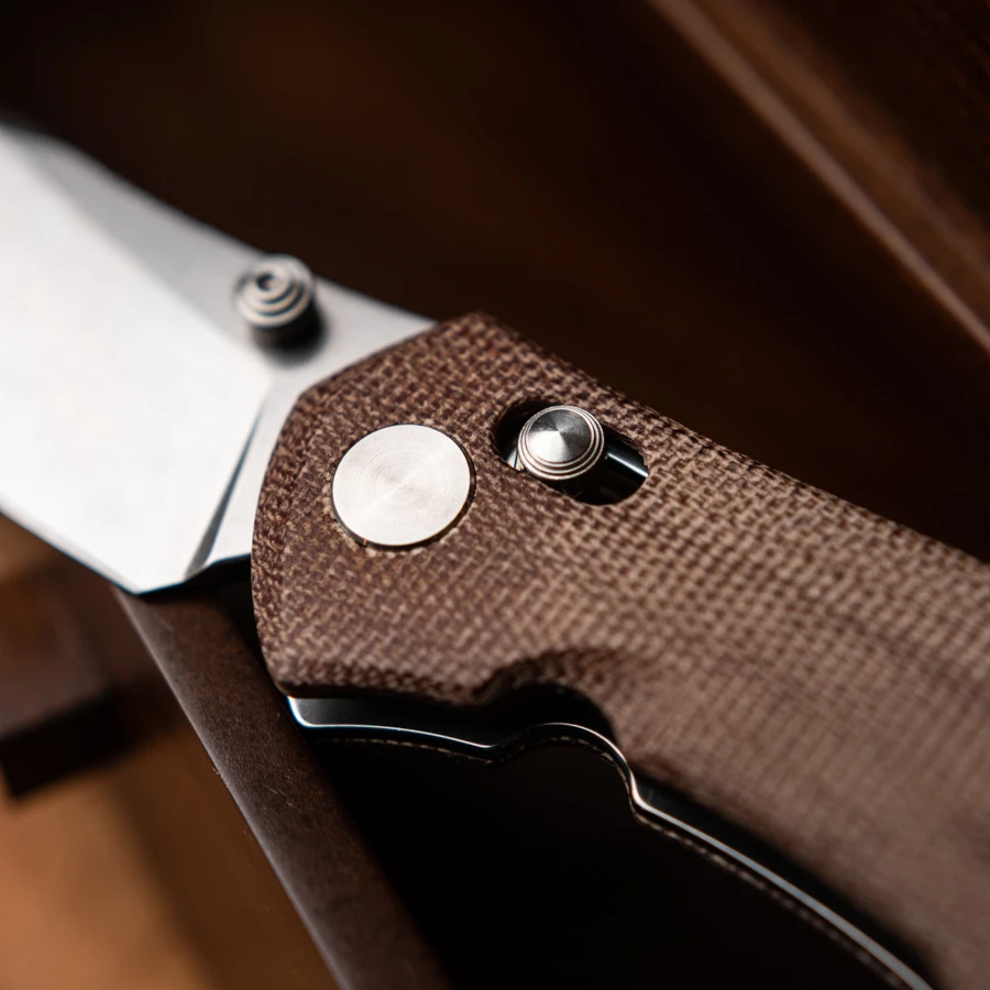 Depending on your personal taste, you have the choice of either titanium or lightweight micarta handle scales. For the best possible balance, both versions have a solid brass back spacer. Made – just like the Farley – by Bestech.