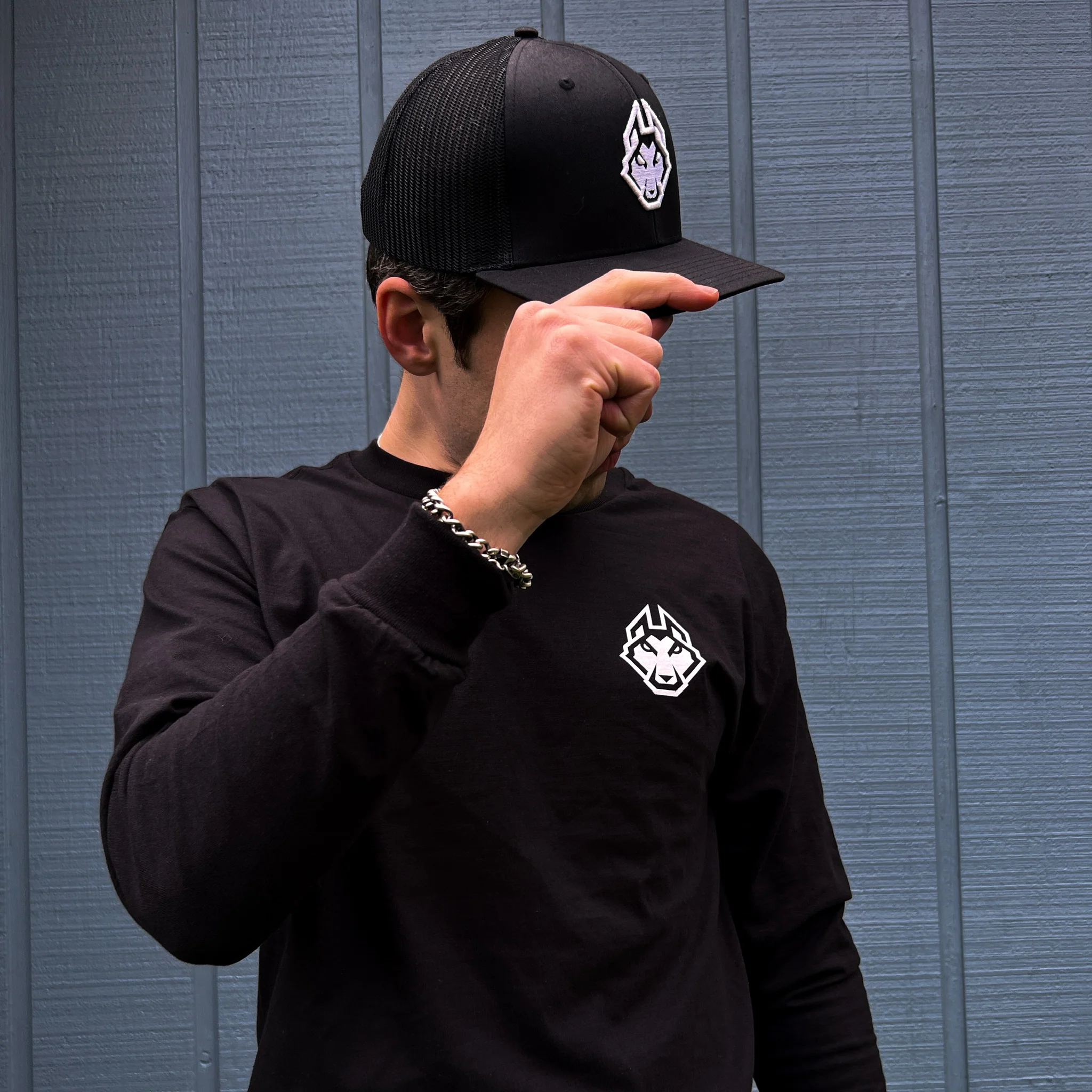 - Trucker hat with white 3D Jack Wolf Knives logo