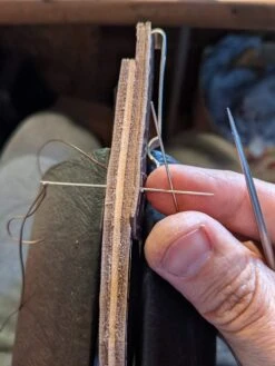 Natürlich wird auch die Schaidi in Handarbeit von Daniel in seiner kleinen Werkstatt aus bestem Leder genäht. Erhältlich in folgenden Farben: schwarz, dunkelbraun, buttero