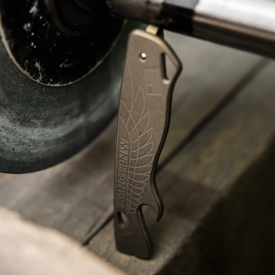 Casey Lynch has created some serious hype in the gear and knife community with the All Access Pass Prybars. Hard to get and extremely popular! These handy pocket-sized pry bars are not only great for prying, screwing, scraping and anything else a knife blade is too delicate for. Also beer and of course all other drinks with crown caps can be opened with the cap lifter with ease. Completely milled from one piece of the highest quality 6AL-4V titanium and the typical Lynch Deep Carry Clip. All Lynch tools are indidually hand finished. 100% Made in America