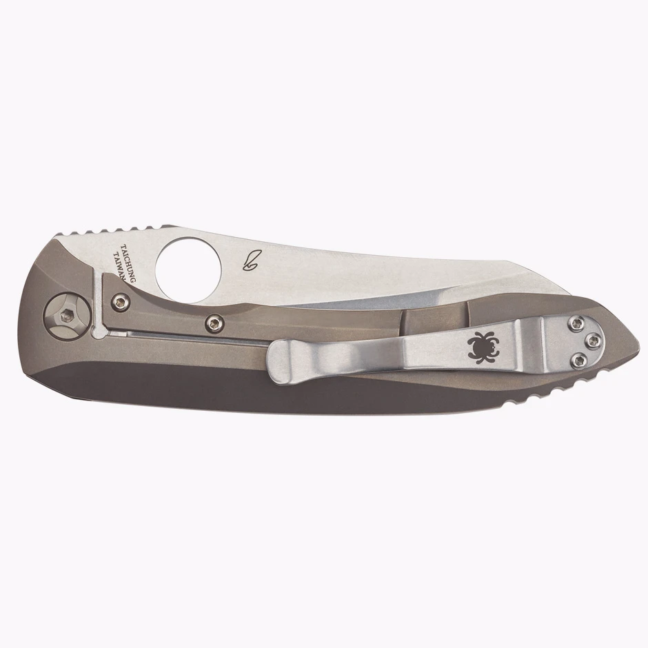 Peter Rassenti gehört zur neuen Generation aufstrebender Messermacher und ist dafür bekannt, extrem detailverliebte Arbeiten abzuliefern. Seine Frame-Lock-Folder aus Titan sind legendär, wunderschön aber eben auch gleichermaßen schwer zu bekommen wie kostspielig. Rassentis Monoblock-Designs gelten gehören zu den schönsten Titan-Messern, die die Szene zu bieten hat und so ist es um so toller, dass mit Spyderco ein Produktionspartner gefunden wurde, der die beeindruckenden Arbeiten zu einem etwas erschwinglicheren Preis aber auf höchster Qualitätstuffe anbieten kann.