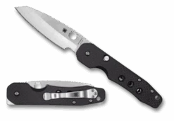 It features Spyderco’s signature round hole as well as an elegantly integrated flipper opener.