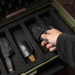 The bottom inlay offers space for 3 medium fixed knives