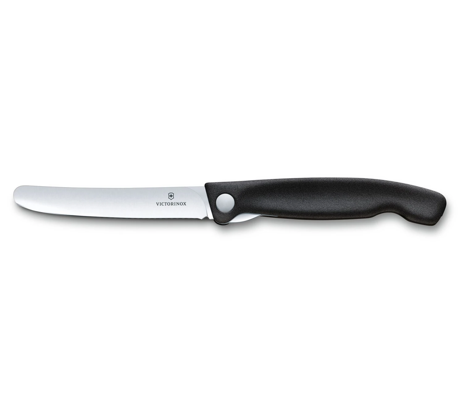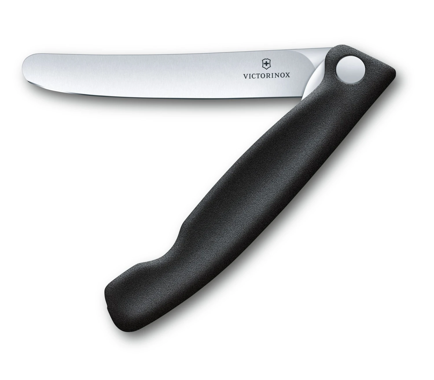 Now there is with the foldable paring knife the perfect kitchen helper for on the road. Whether camping, on a long hike or bushcrafting in the forest: wherever food is prepared, the “vegetable rattle” is with you. For the blade, Victorinox use this time the very rust-resistant 440C steel; the blade is available both with and without serrations.